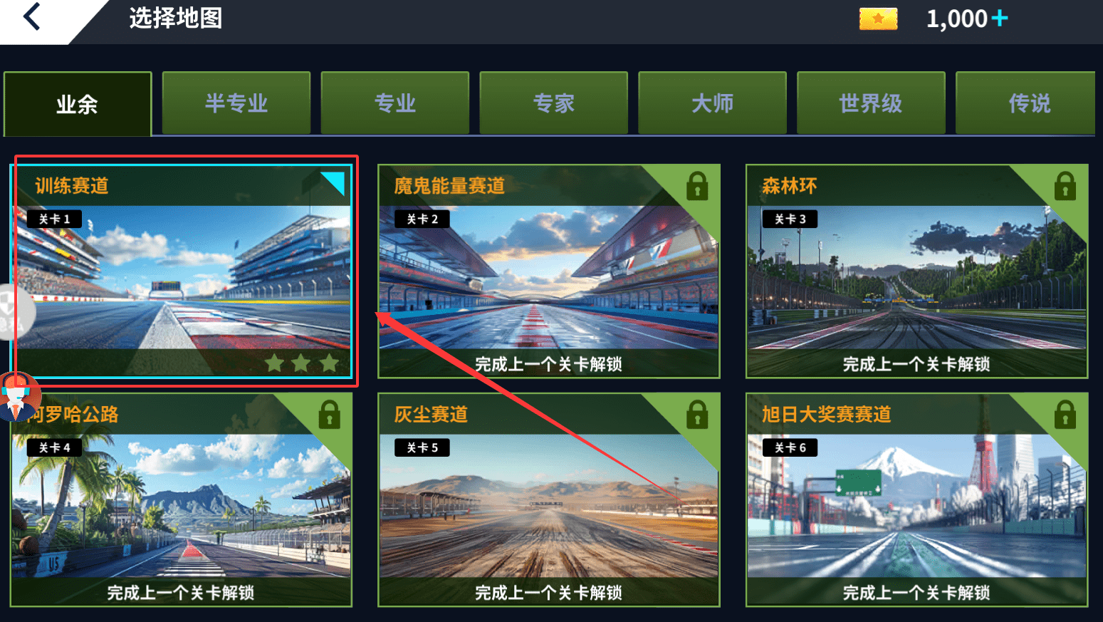 2、通过试炼关卡学习保证安全的前提下完成挑战,注意观察赛道环境特点,为后续正式比赛做好充分准备,逐步提升驾驶水平。