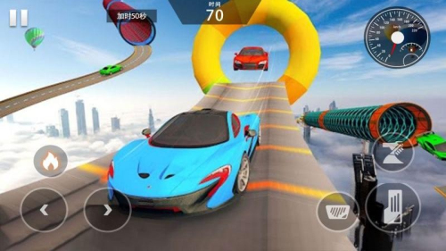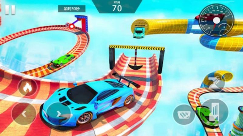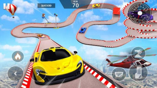 1、游戏设计多种特殊特技赛道场景,包含巨型跳台螺旋轨道等独特元素,要求玩家在竞速过程中完美结合驾驶技巧与特技表演。