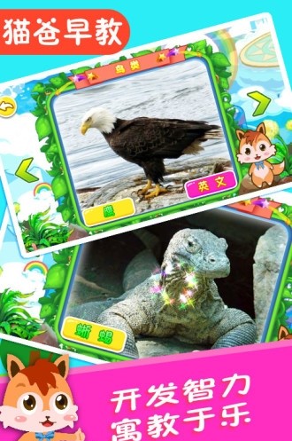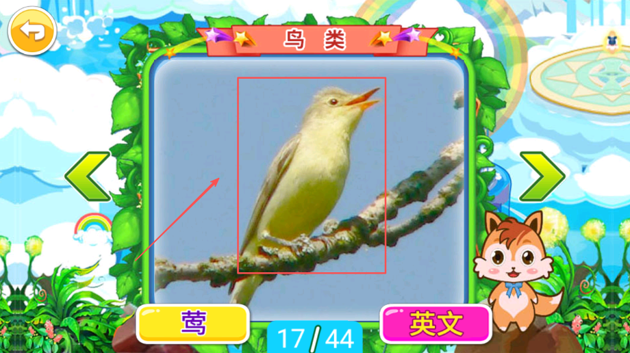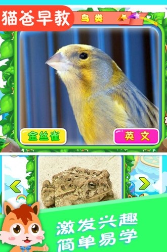 1、进入游戏后首先来到动物世界主界面,孩子可以选择哺乳动物、鸟类等不同分类开始探索,每个类别都包含多种常见动物物种。