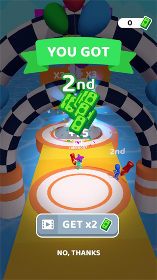 3、抵达终点后获得1st排名,界面弹出YOUWIN提示,同时获取+500的奖励道具,完成本关挑战。