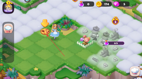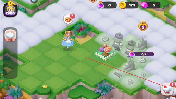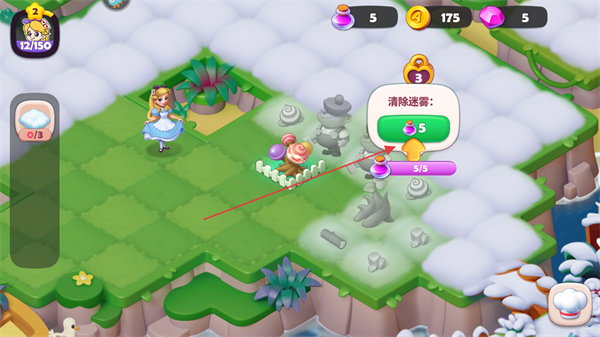 3、使用道具如紫色瓶子,消耗3个道具清除场景中的迷雾,解锁新区域。
