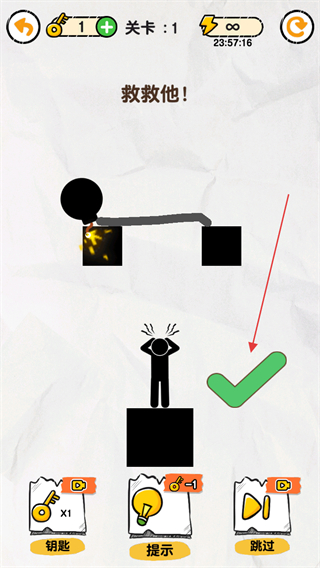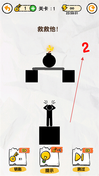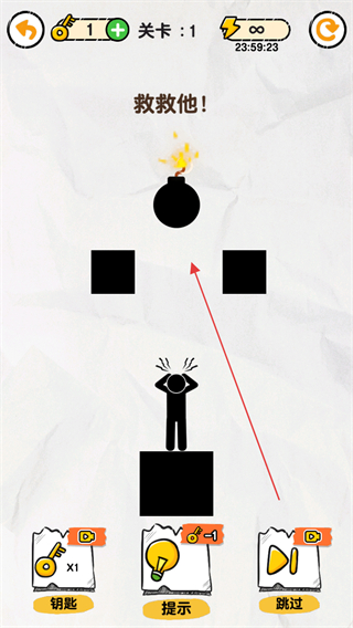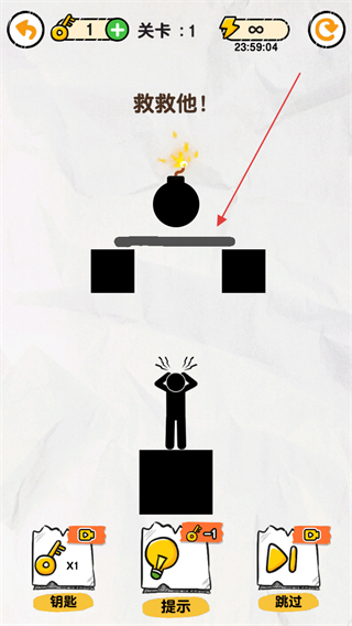 1、观察关卡,炸弹在火柴人上方,需画线保护他。