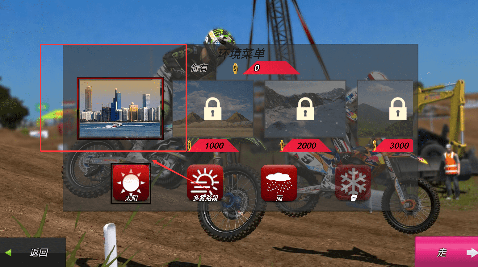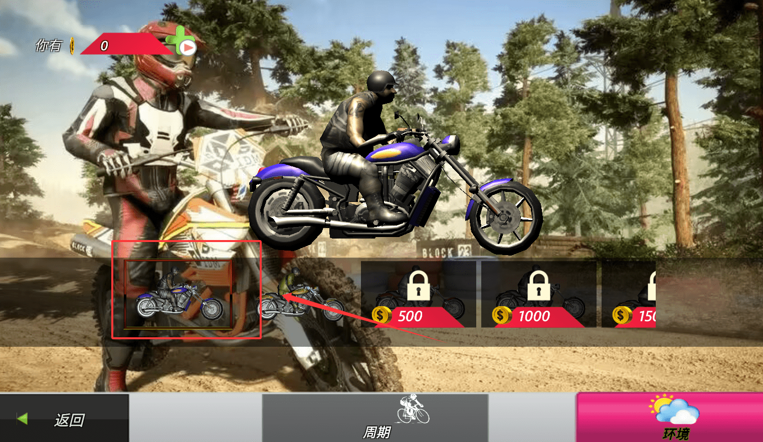1、进入游戏后首先完成基础操作教学,掌握方向控制与漂移技巧,在车库界面选择初始摩托车并了解各项性能参数差异。