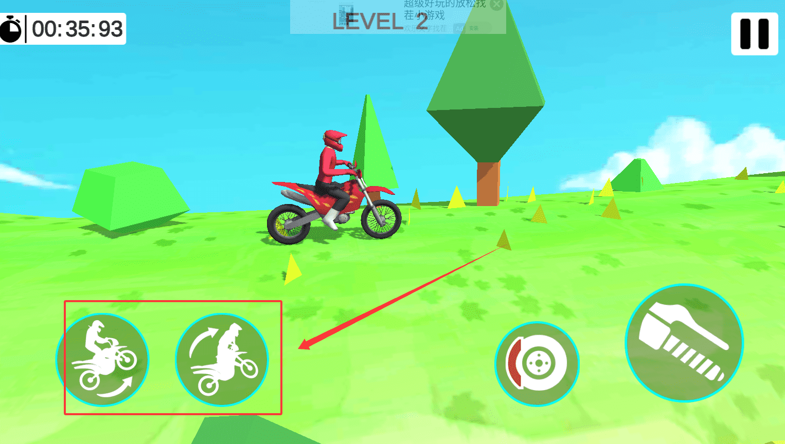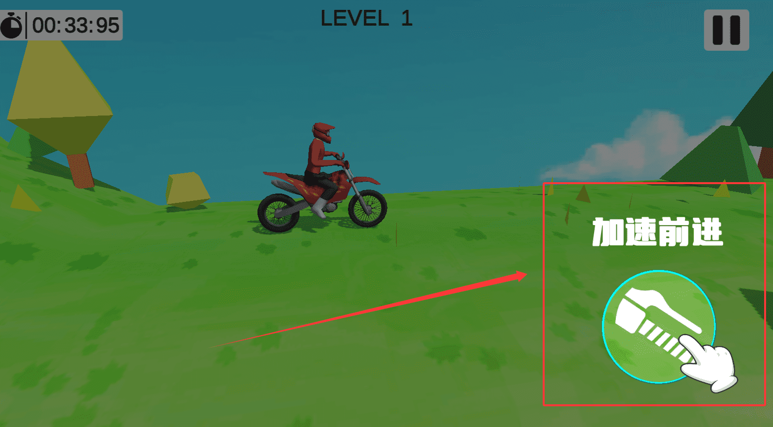 1、通过直观易懂的手势指令控制摩托车的加速减速以及左右倾斜动作,每一个独立关卡都设定了明确的完成时间限制与难度评级。