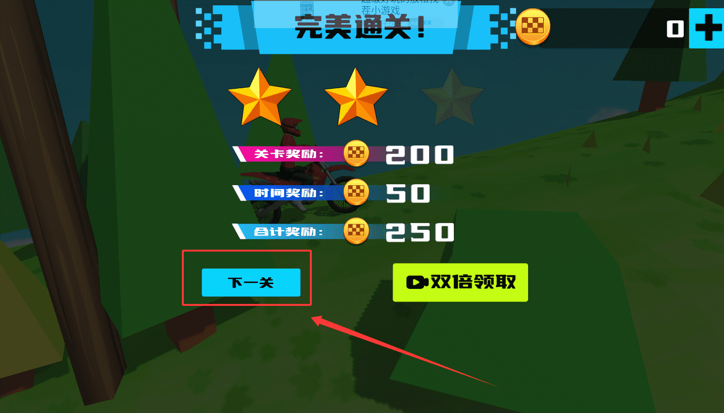 1、进入游戏后,首先选择适合的挑战模式并解锁初始摩托车,通过手势控制车辆倾斜与加速,在起伏山道中保持平衡。