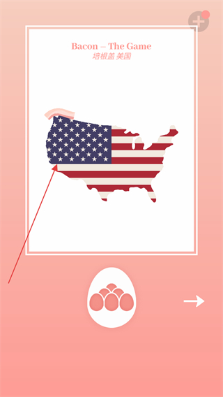 1、明确当前任务是制作培根盖美国,将培根拖动到美国地图造型的对应位置。