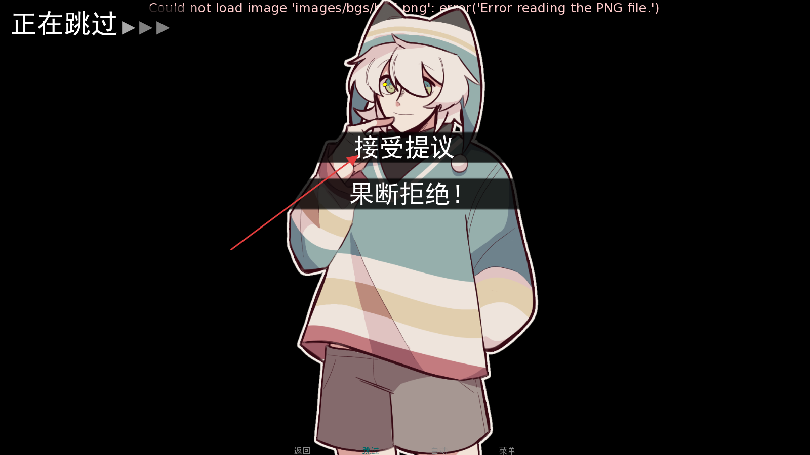 2.对话跳过后来到选择界面,可选择接受提议参与互动,或选择果断拒绝,按需求选对应选项推进剧情。