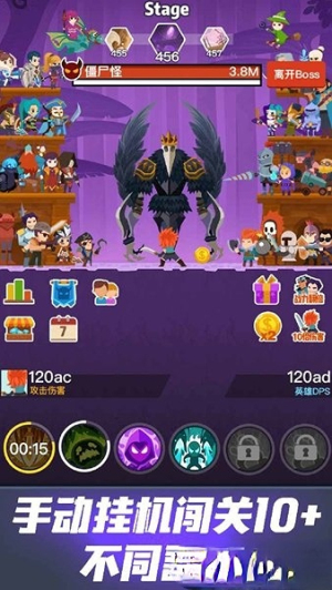 3、随着关卡推进难度逐步提升,需要合理利用挂机收益与增益效果强化整体战力,游戏内设有多样属性加成系统。