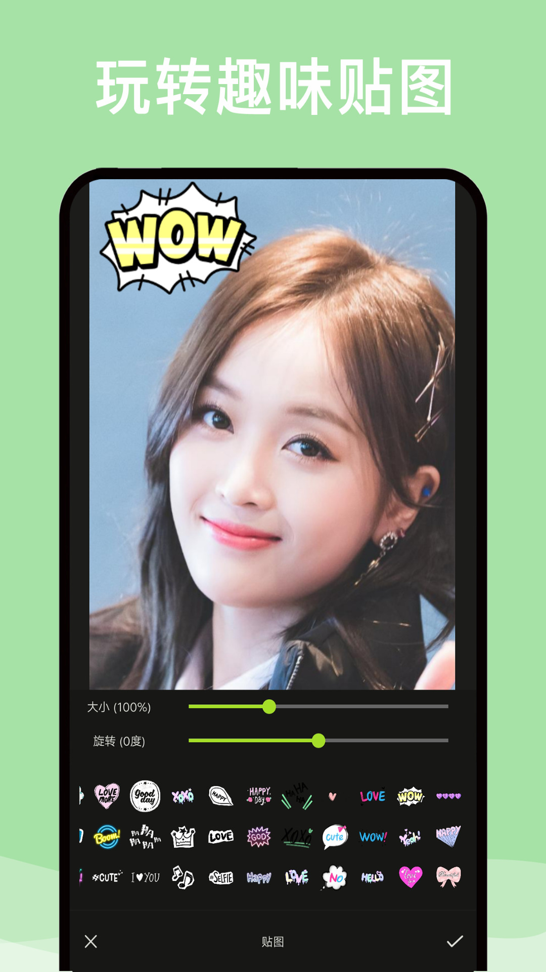 ●自定义个性贴纸:海量潮流贴纸持续更新,包含嘻哈风、可爱系、文艺范等多种风格。支持自定义贴纸创作,打造专属视觉符号。