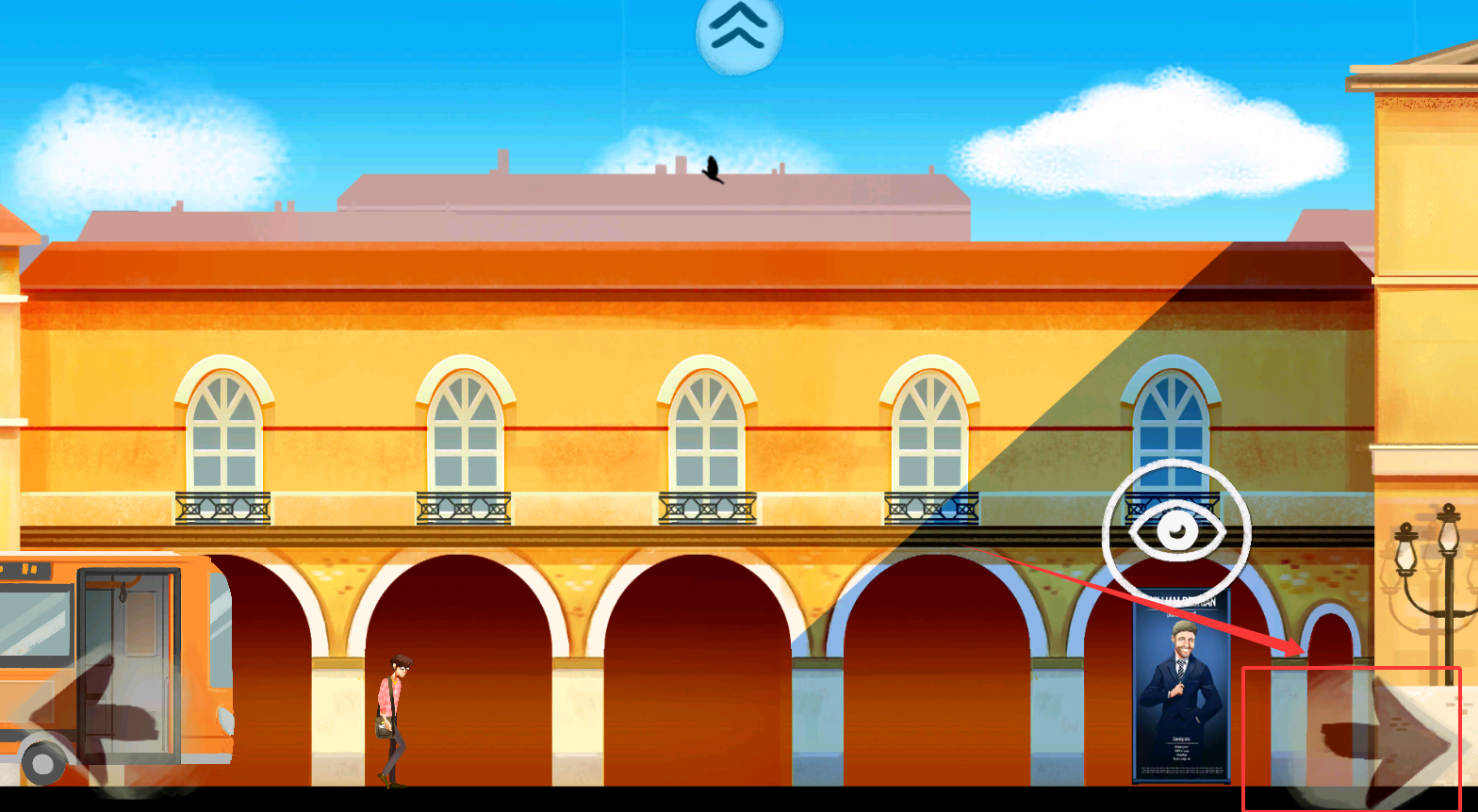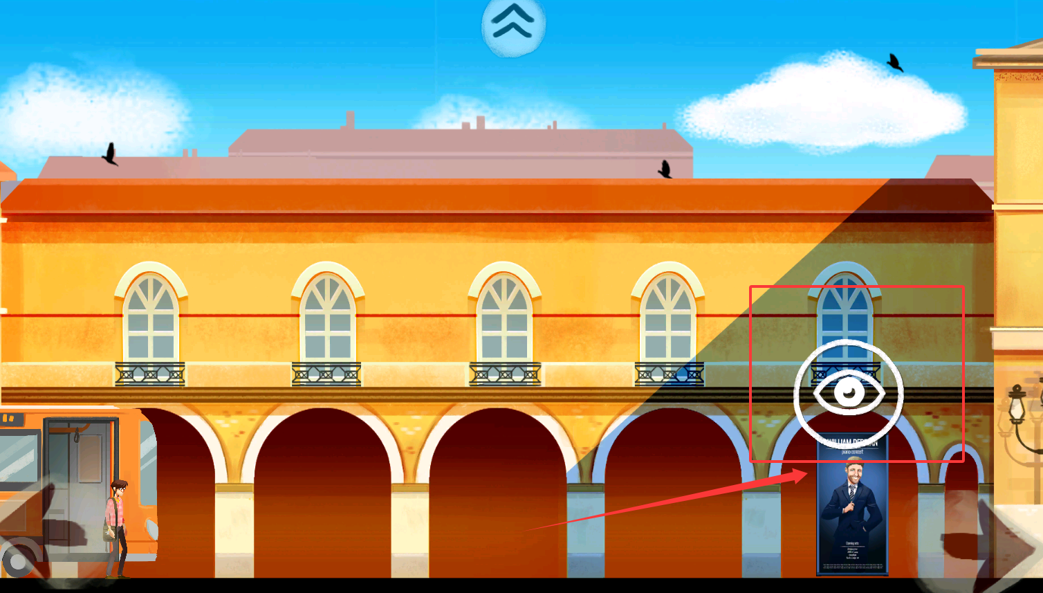 1、玩家通过左右按键控制角色基础移动,并点击场景中高亮物品进行交互,探索时需要留意眼睛等特殊图标以获取关键线索推动情节发展。