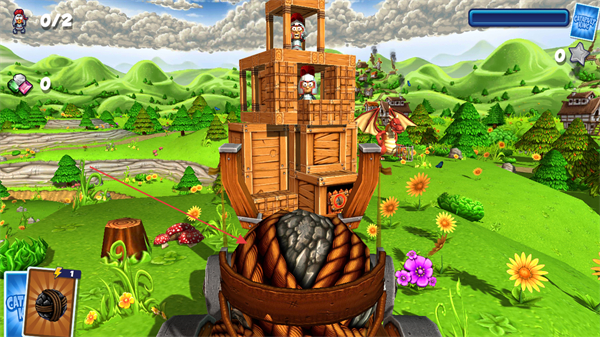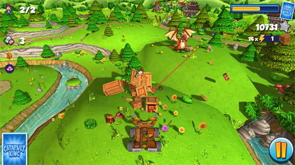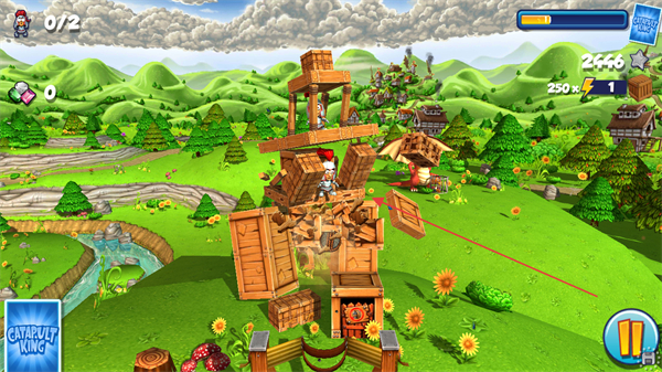 1、选择弹射道具如CATAPULTKING,瞄准木质塔楼结构。