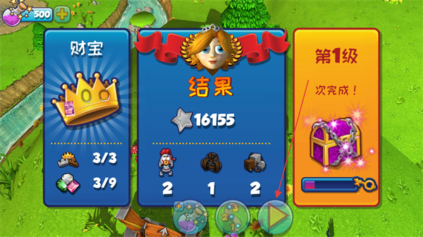 4、关卡结束后查看结算界面,获得得分与奖励,准备进入下一关。