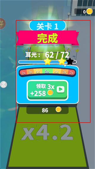 4、完成关卡进程后,查看结算界面的成果,点击对应区域领取获得的金币奖励。