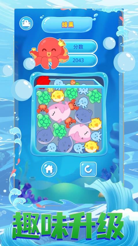 游戏独创的连击系统会在连续合成时触发特殊效果。当达成3次以上连续合成时,将激活"海洋狂欢"模式,所有合成得分翻倍。5次连击更会召唤出神秘的海神祝福,短时间内所有生物自动向最高等级进化。掌握连击时机是冲击高分的关键技巧。