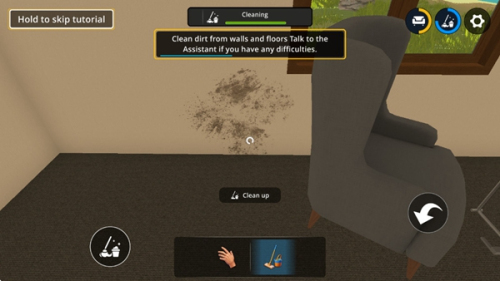 2、同时,利用屏幕左侧的方向摇杆控制角色在酒店各处移动,以便于同员工与客人进行互动交流。