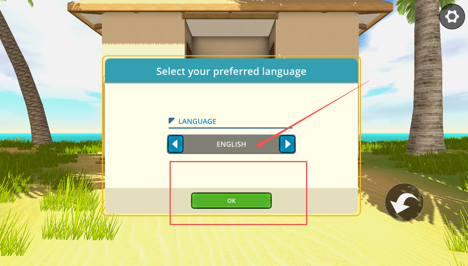 1、初次进入游戏时,系统会提示您选择熟悉的操作语言。完成选择后,便可正式踏入这片热带岛屿。通过屏幕右侧的虚拟按键。