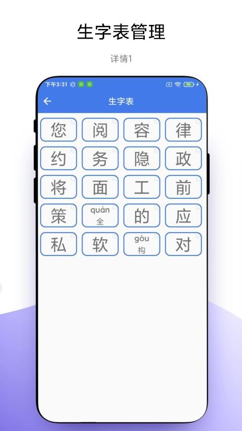 点击生字拼音学习,跟着拼音学习,还能将其加入生字表中学习;系统会记录每个生字的学习次数和掌握程度,帮助用户有针对性地复习。用户还可以为生字添加个人注释,加深记忆。