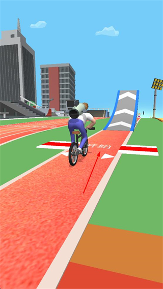 2、操控单车沿跑道行进,驶向跑道上的坡道,借助坡道让单车完成腾空动作。