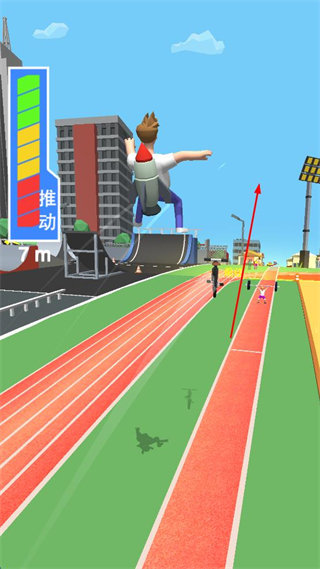 3、观察左侧推动进度条,保持单车腾空状态向前滑行,尽可能延长滑行距离。