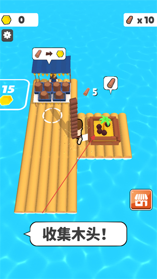 3、从初始的小范围伐木换钱,到扩建领地解锁更多资源点,再到升级木材收货商提升售卖收益,每一步操作都能推动生存进度,最终朝着建造坚固木筏的目标迈进。
