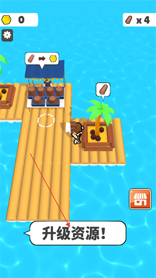 4、持续循环资源收集、交易、升级的步骤,逐步扩展木筏小岛的设施与规模,推进关卡进度。