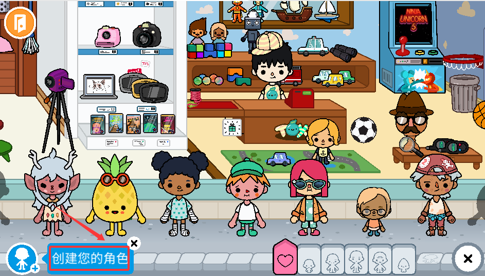 1、初次进入托卡小镇世界,建议优先点击右上角创建专属角色,系统会提供随机形象模板,同时也支持完全自定义的精细捏脸功能,为后续沉浸式体验打下基础。