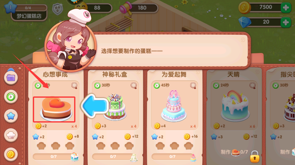 3、合理规划蛋糕制作,日常选心想事成刷经验,升级前改做情人节等耗时品种求高收益,利用离线清店处理库存,避免抛售。
