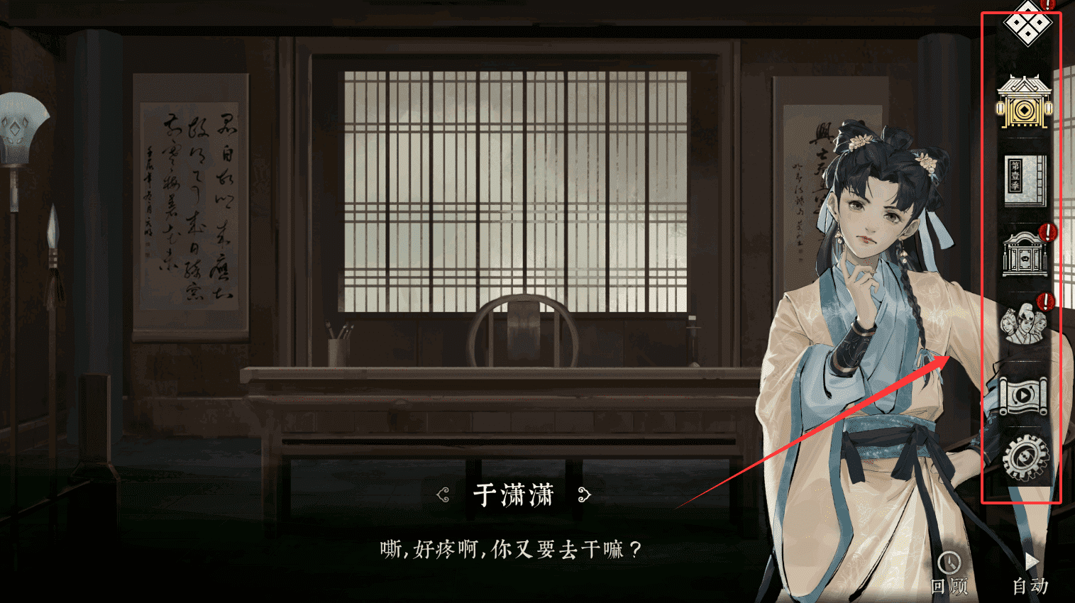 3、遇到选项时,比如“继续睡”或“起床”,请根据你的剧情倾向点击选择。注意界面上的“回顾”和“自动”功能。