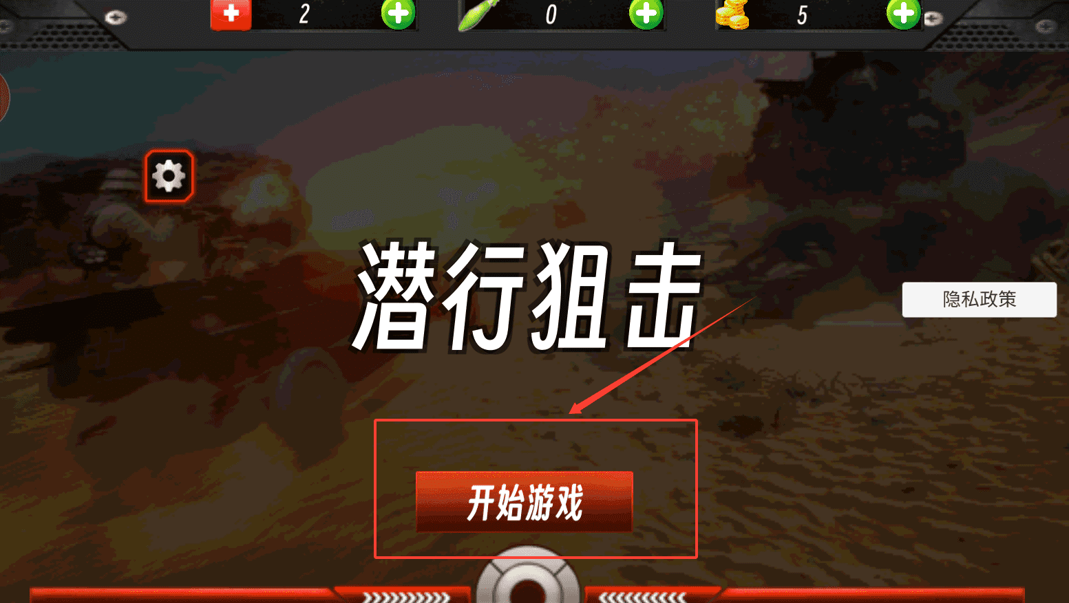 1、打开潜行狙击游戏后,在主界面可以看到“开始游戏”与“隐私政策”的入口,直接点击“开始游戏”按钮就能进入游玩。