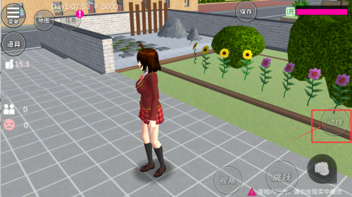 1、基础操作与自由探索,游戏使用虚拟摇杆控制移动,你可以让角色在校园里随意走动,熟悉教学楼、操场和商店街这些主要场景。
