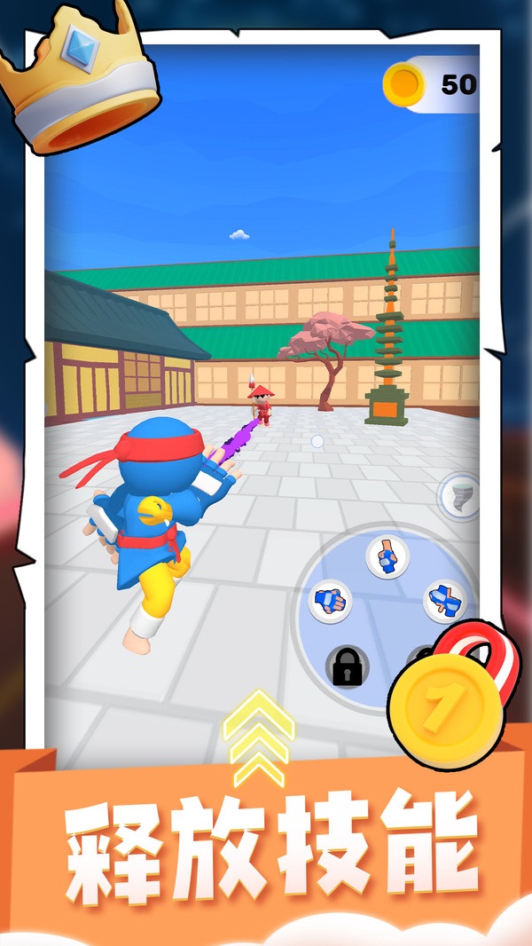 1. 玩家通过简单的点击操作来释放忍者技能,不同技能之间需要合理搭配使用。
