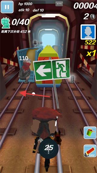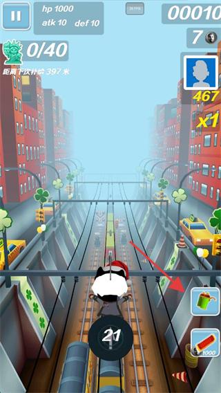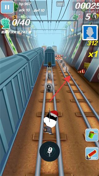2、hp降低用饮料恢复,滑屏换轨避开列车,收集金币提升积分,靠近补给点准备强化属性。