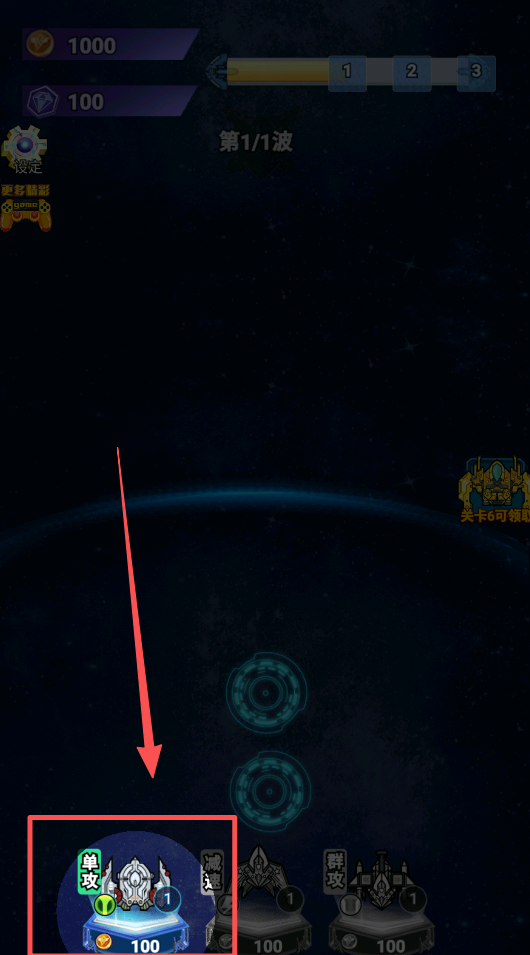 2、进入关卡后,你会看到屏幕上方显示当前波次和分数,比如第1波,下方是你的战机编队和资源数量,初期要合理布置防守。