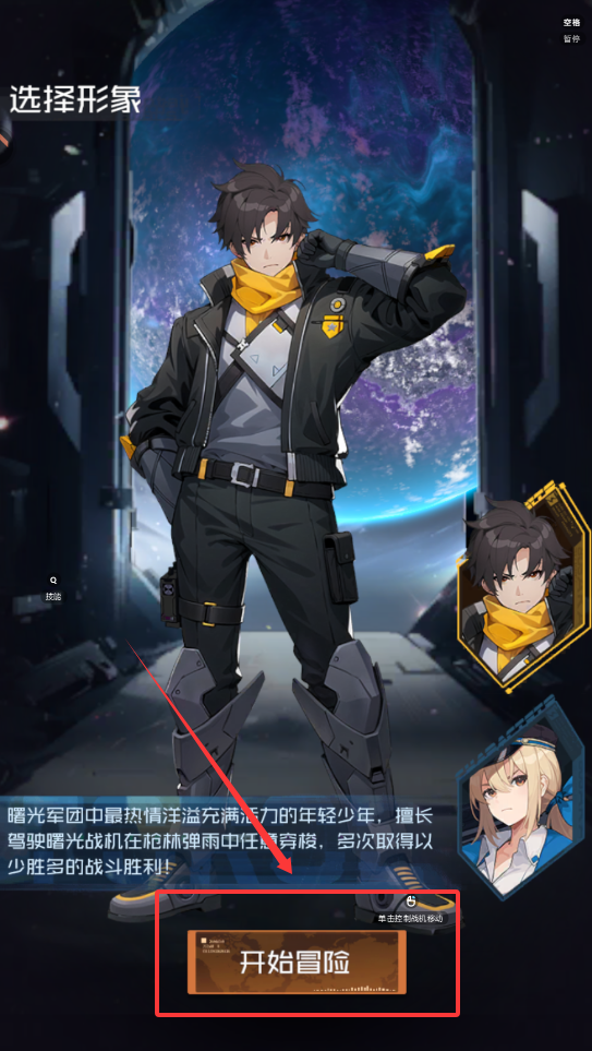 1、进入游戏后,首先要完成角色选择。在第一个画面里,你会看到“选择形象”,这里有像“宿择昌”这样的角色简介。
