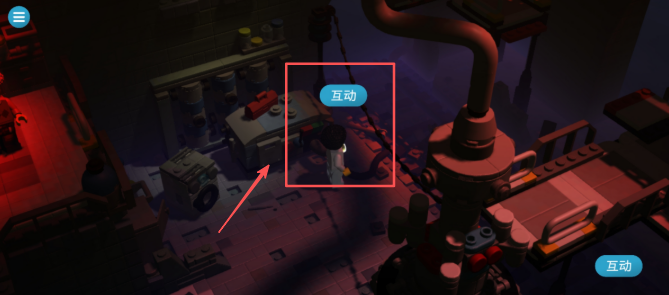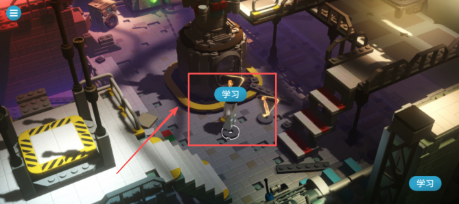 3、点击互动按钮接通电源解锁新区域,进入塔堡认真学习搭建积木的方法技巧。