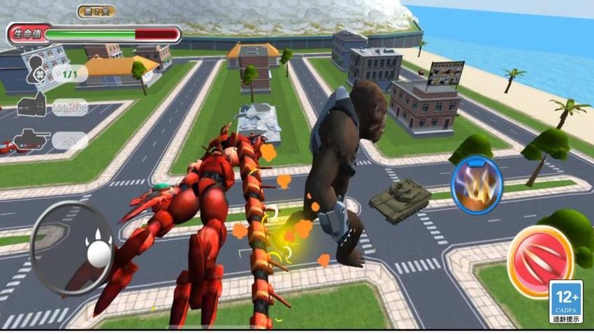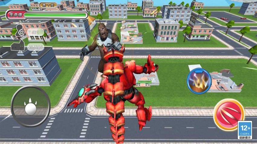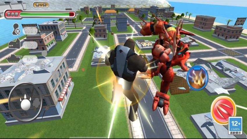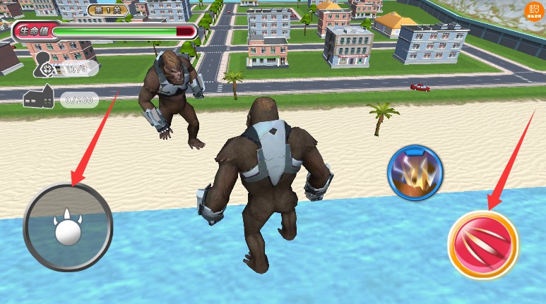 3、使用左侧虚拟摇杆控制怪兽移动方向,右侧按钮可发动普通攻击与特殊技能。