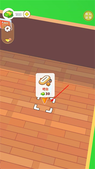 2、在弹出的选项里选择吧台,消耗30个金币,将吧台放置到指定的空位区域。