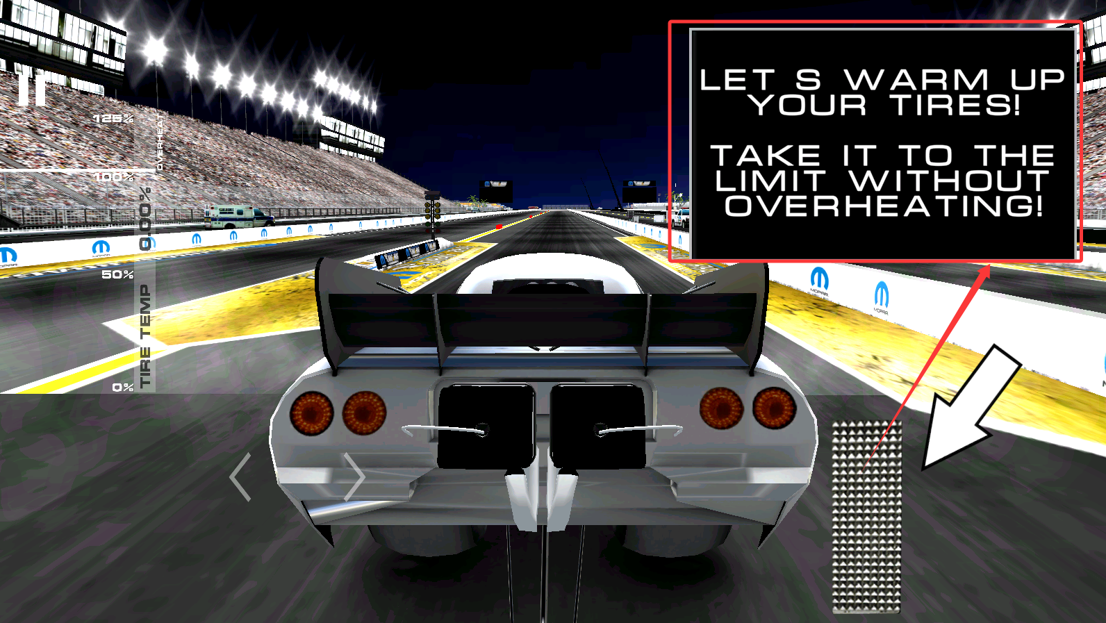 1、我们先来热身一下,打开Mopar Nation软件,在主界面选择“LET S WARM UP YOUR TIRES”的暖胎环节,这个步骤能帮助你的赛车进入最佳状态。