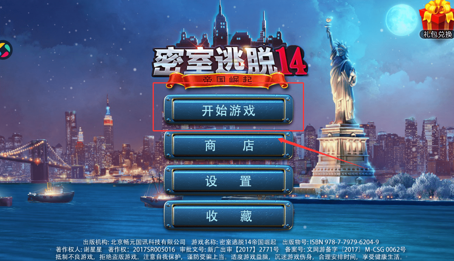 2、接着,在主菜单点击“开始游戏”,正式进入“帝国崛起”的冒险。游戏目标是探索场景、收集物品并解开谜题,推动剧情发展。