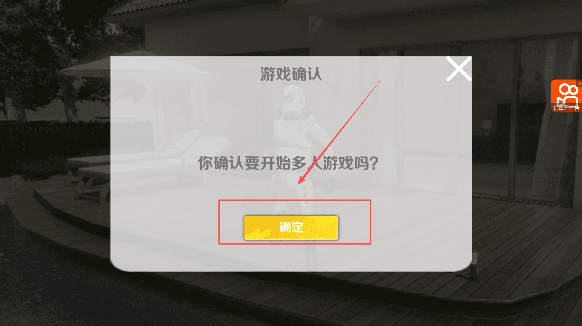 2、想和朋友一起玩的话,就点击“多人游戏”按钮。这时会弹出一个确认框,写着“你确认要开始多人游戏吗”。