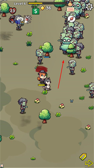 4、在后续关卡如Level6中,继续操控角色向僵尸群体移动,推进关卡进度。