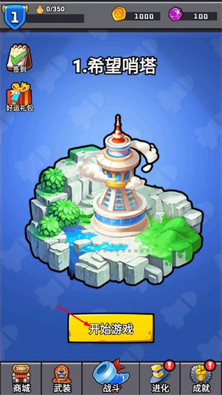 2、在希望哨塔关卡页面中,点击下方的开始游戏按钮,进入具体的游戏战斗界面。