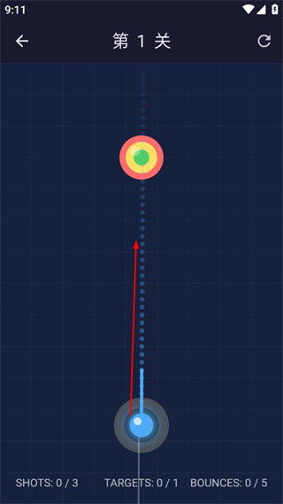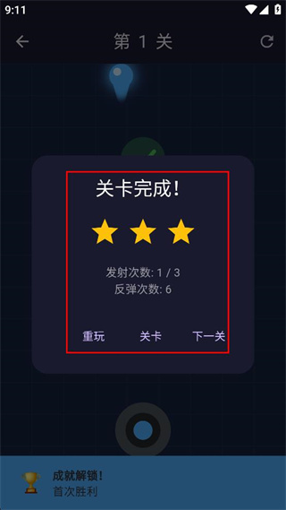 3、观察弹珠的反弹情况,使弹珠成功击中目标,完成关卡要求的目标数量。