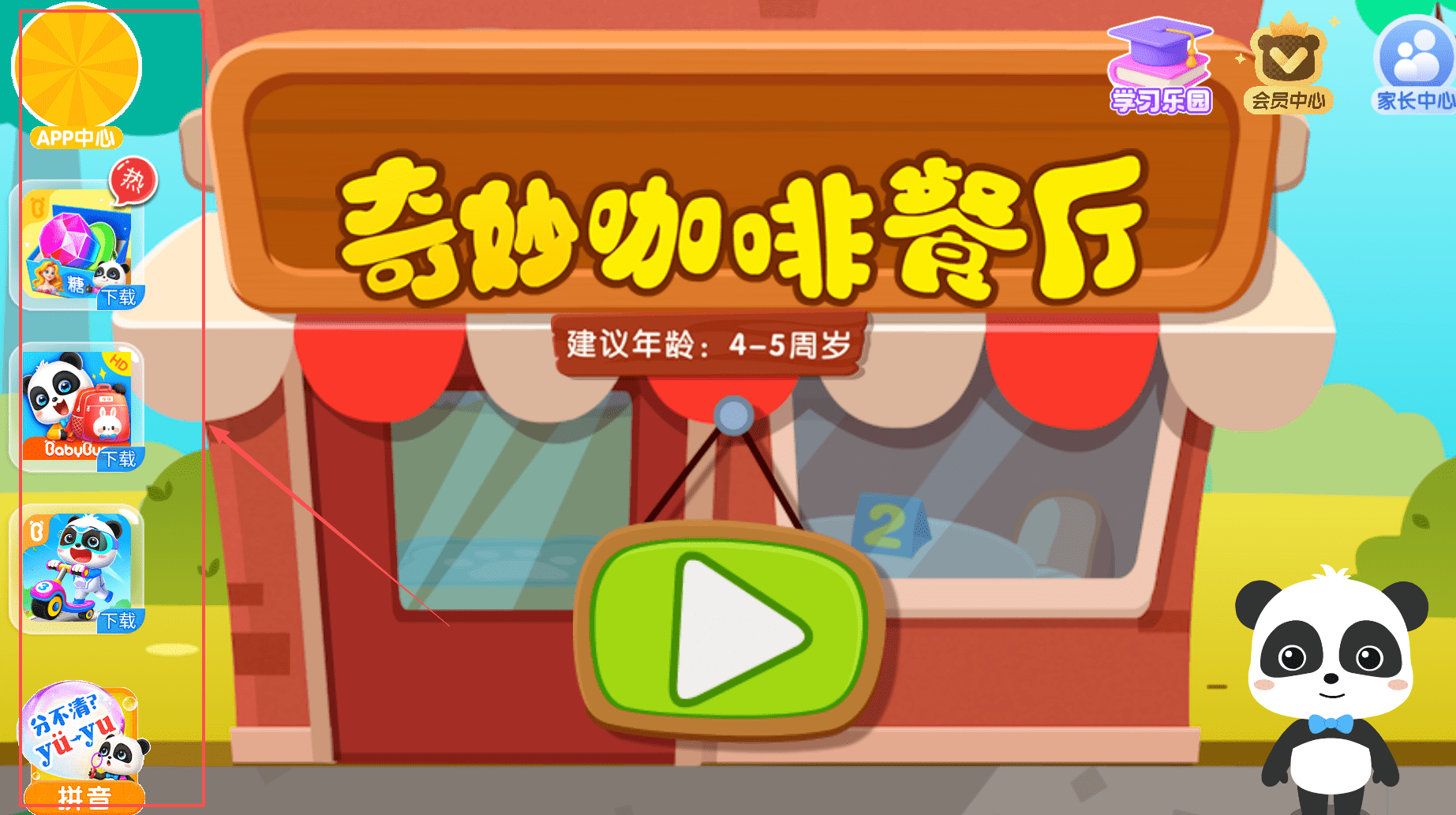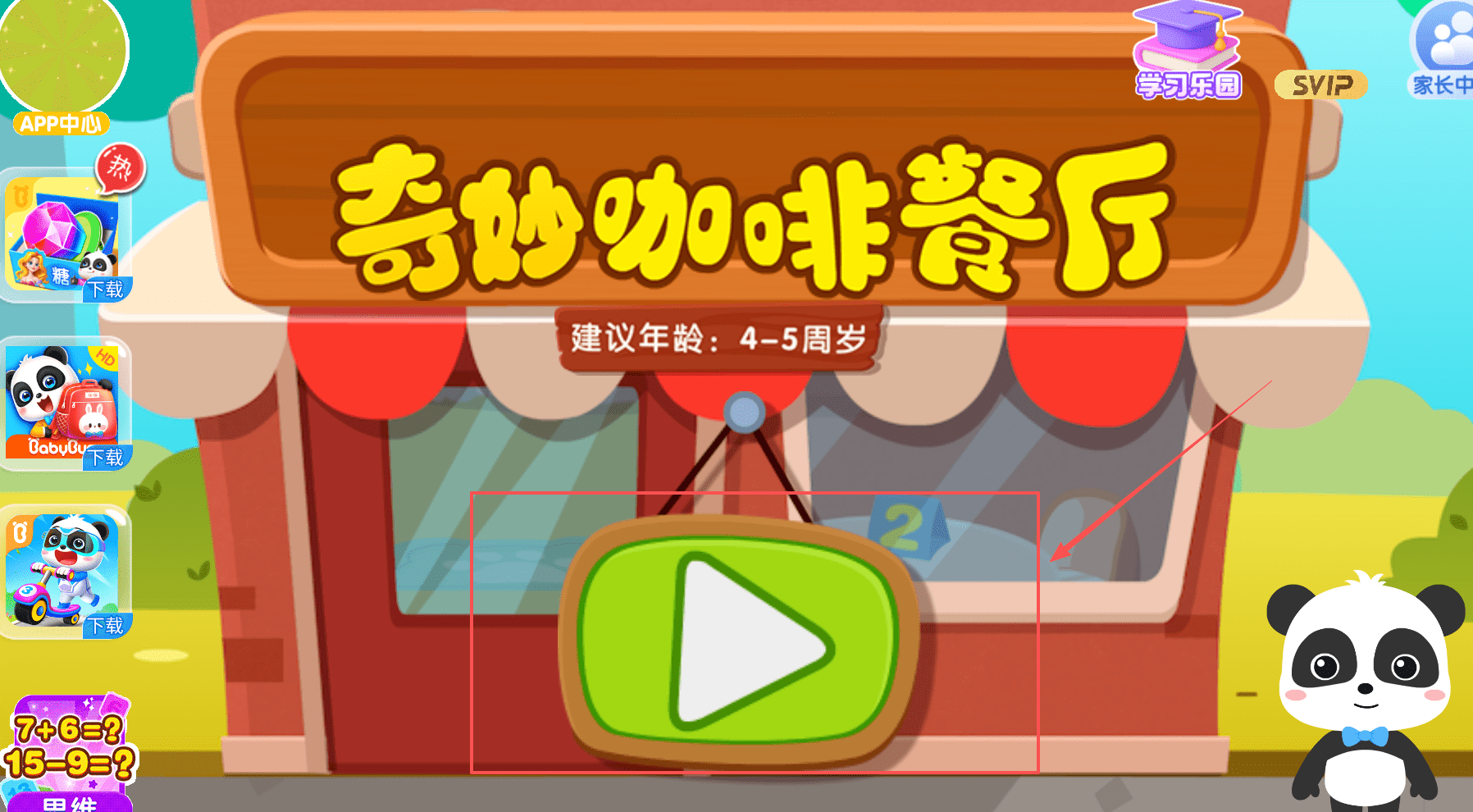 1、首先,你需要找到APP中心或学习乐园栏目,在搜索框输入“奇妙咖啡餐厅”或者直接浏览4-5周岁推荐板块。