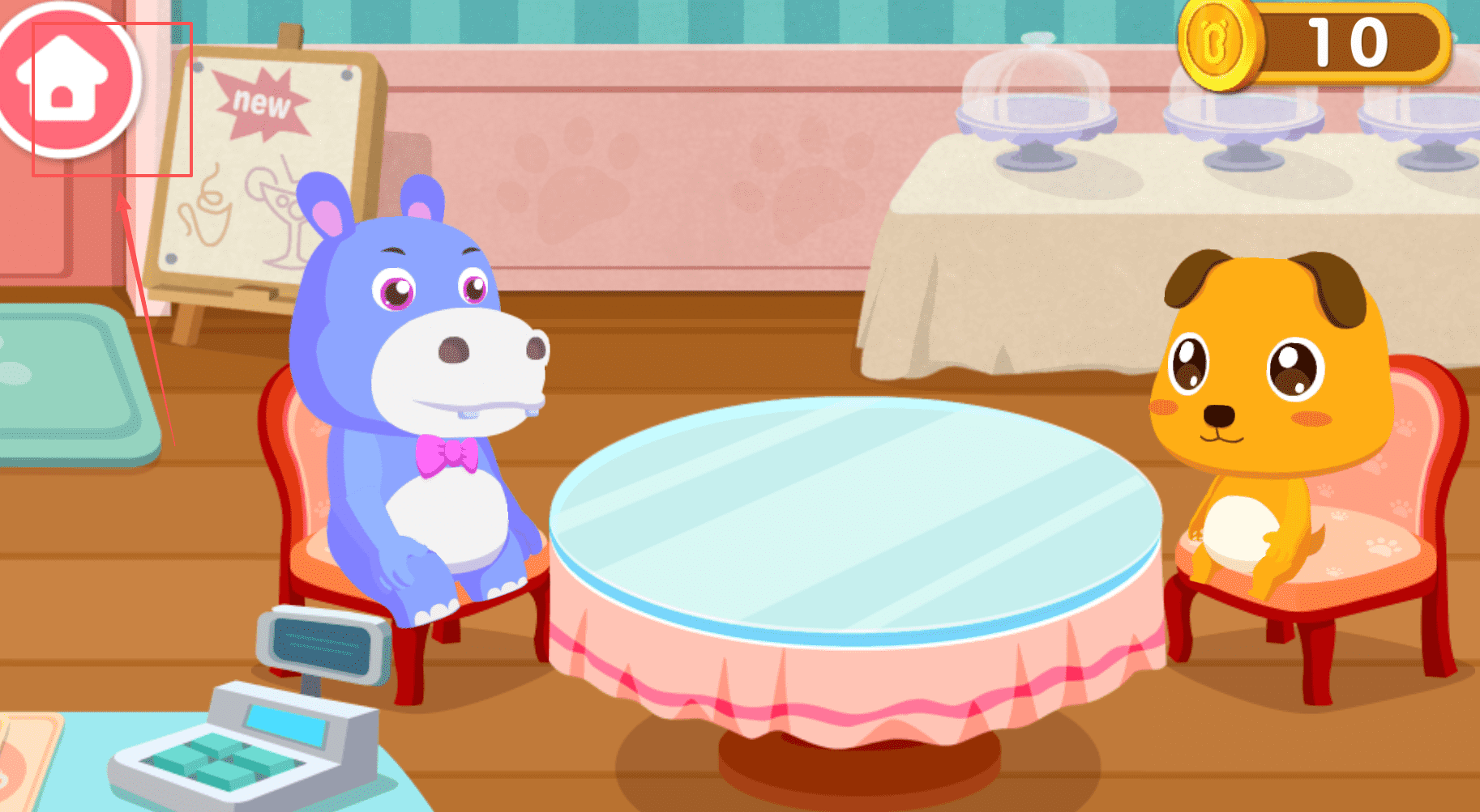 2、下载完成后打开软件,主界面会呈现咖啡餐厅的卡通场景。