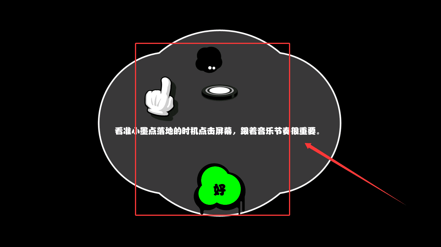2、游戏的核心是看准时机点击屏幕,当小墨点从空中落下、即将触地的一瞬间,你需要快速点击。