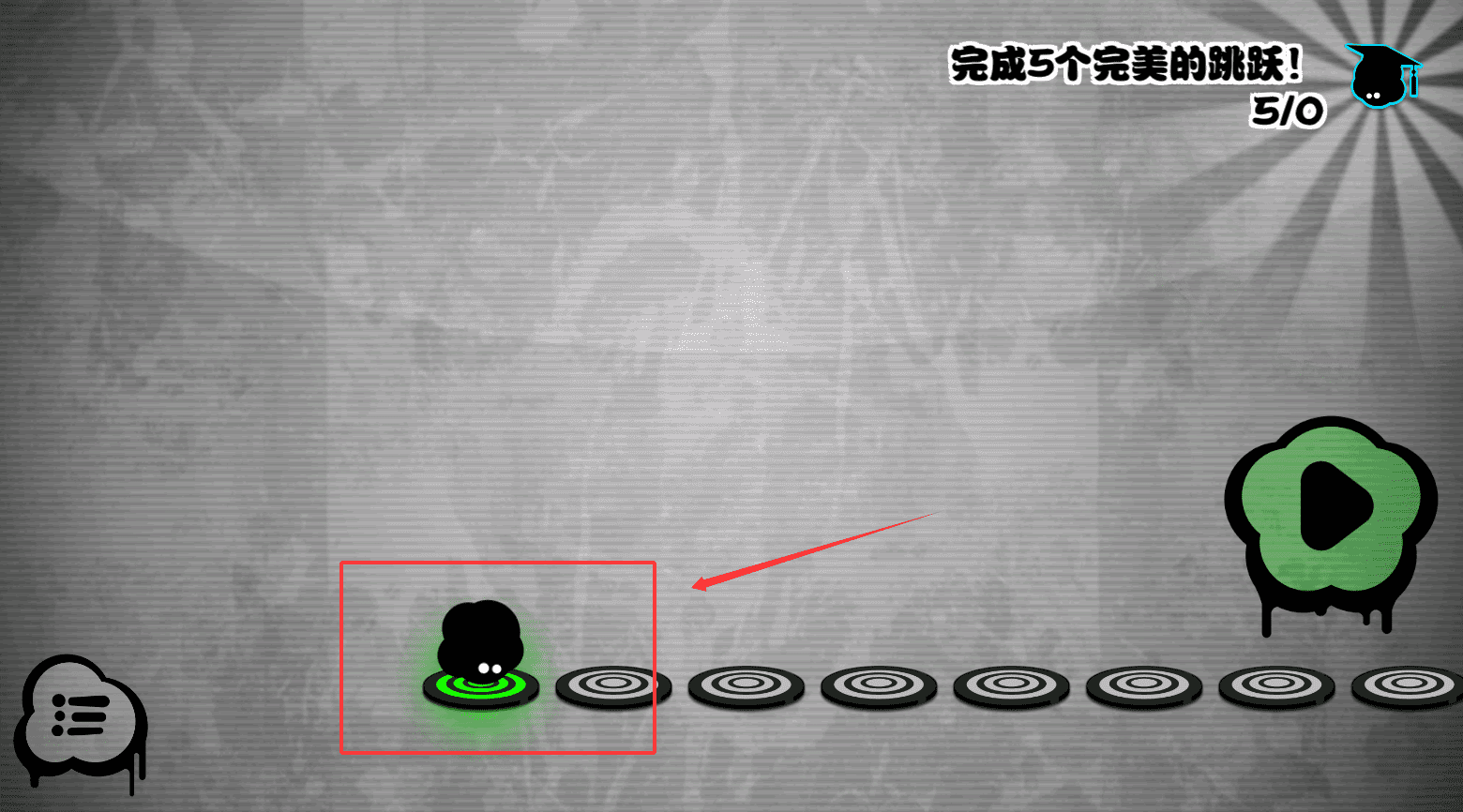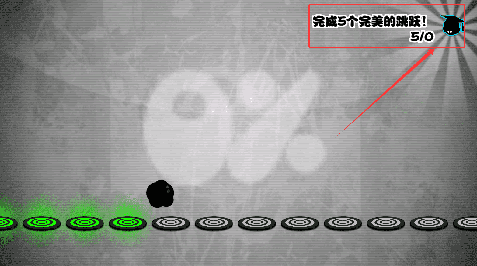 3、你的目标是完成5次完美的跳跃,画面上的“5/0”表示还需完成的数量。每次成功跳跃,数字会变化,比如变成“4/1”。