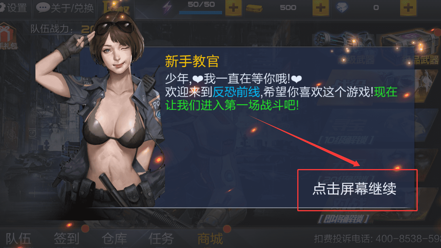 1、首先哦,打开游戏后会看到“点击屏幕开始游戏”的提示,你点一下就能进入主界面了。