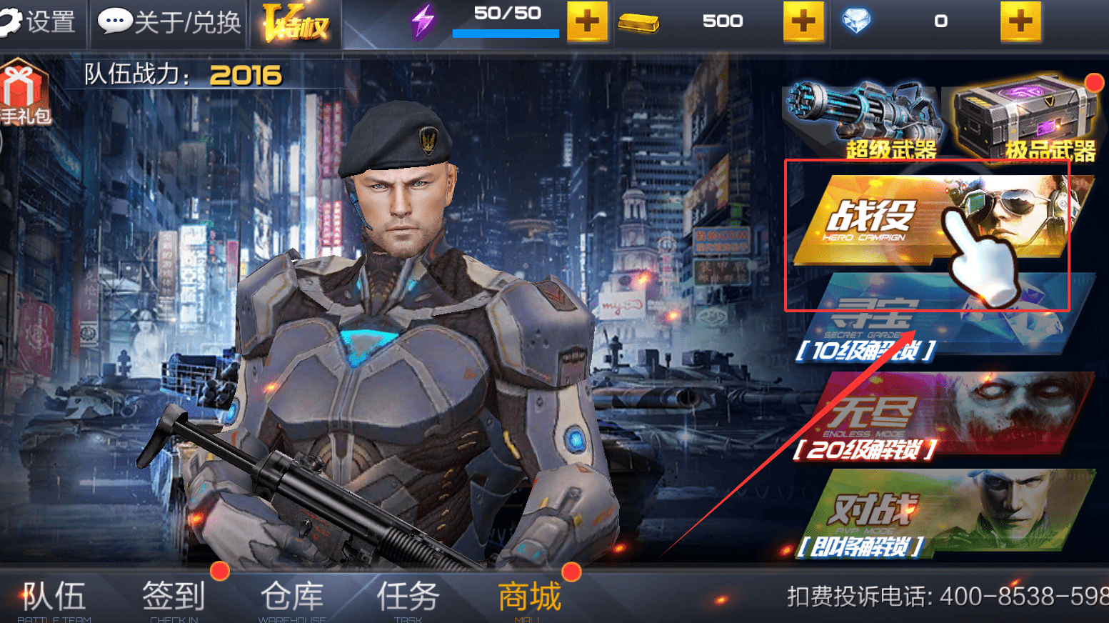 2、然后呢,你得留意队伍战力值,初期可能像图中这样是2016。