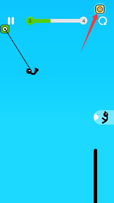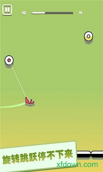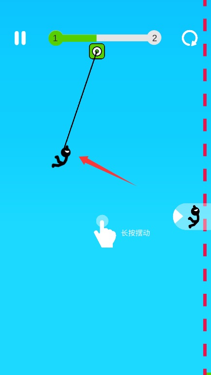 按下屏幕,施放抓钩,钩住屏幕中的吊索,火柴人会根据吊索的和勾线的角度自由摆动。当摆动到合适的角度,松开手指,火柴人会按照运动物理惯性掉落,落到合适的位置后再按下屏幕连接抓勾。跃动得越快,所掌握的技巧就越惊人。据说只有2%的火柴人能达到最后一级!你能应对这个挑战吗?